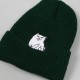 Kulich od značky Ripndip s názvem Lord Nermal Beanie v tmavě zelené barvě. Zpoza ohnutého lemu vykujuící kočička, která je typická pro značku Ripndip.