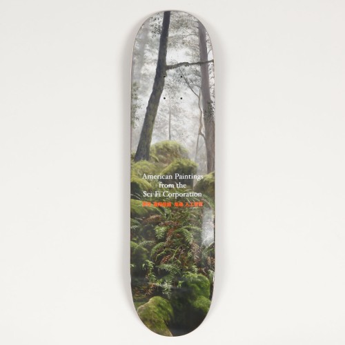 Deska Sci-Fi Fantasy s názvem American Painting Deck. Grafika malovaného lesa s nápisem American Paintings from the Sci-Fi Corporation vespodu, nahoře grafika obrázku lesa s nápisem značky. Vyrobeno ze sedmi vrstev kanadského javoru. Velikost 8.25 palců, wheel base 14.25 palců. Vrchní barvená strana desky se může lišit oproti fotce. Ke každé desce grip zdarma.
