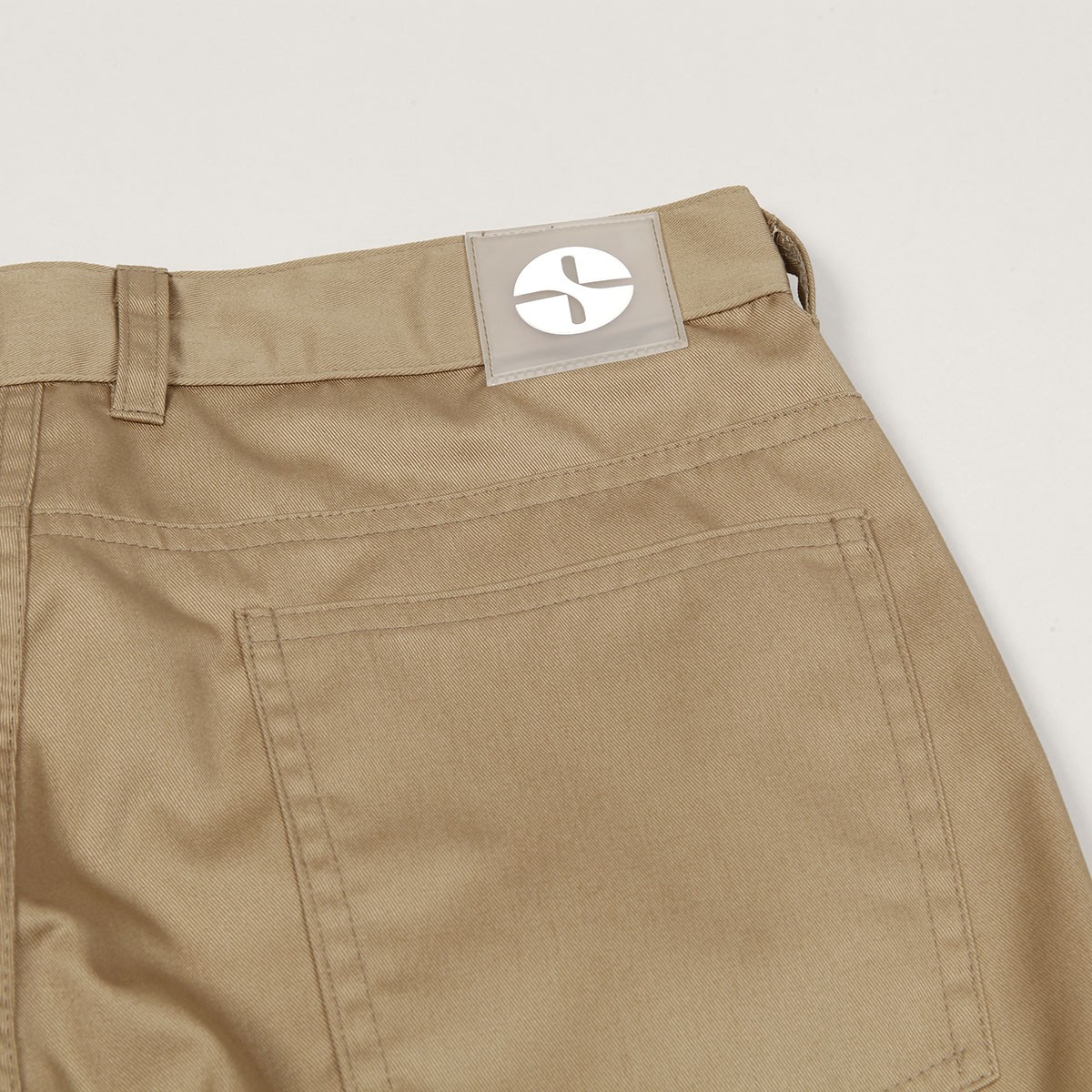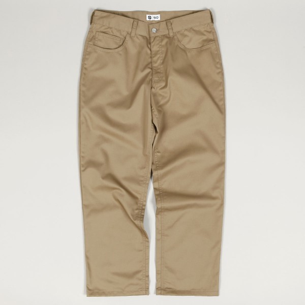 Plátěné kalhoty od československé skate značky SID Limited. Model s názvem S66 Summer Pants v béžové barvě. Mají široký střih Relaxed Fit - Bagginess 6.6/10. Zapínání na knoflík a zakrytý FLY zip. Vzadu gumová nášivka s logem SID. Vyrobeno v České republice ze 100% bavlny.