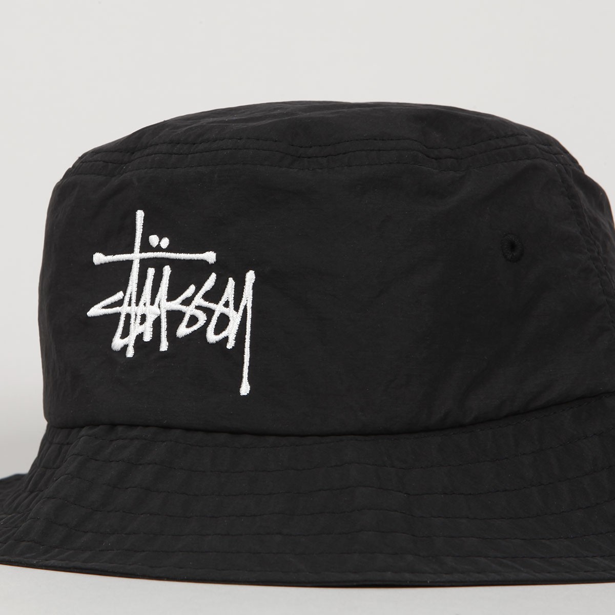 Klobouk Stussy s názvem Peached Nylon Basic Bucket Hat v černé barvě. Na čele vyšité velké kontrastní logo Stussy. Po obou strannách dvě větrací očka. Vyrobeno ze 100% nylonu.