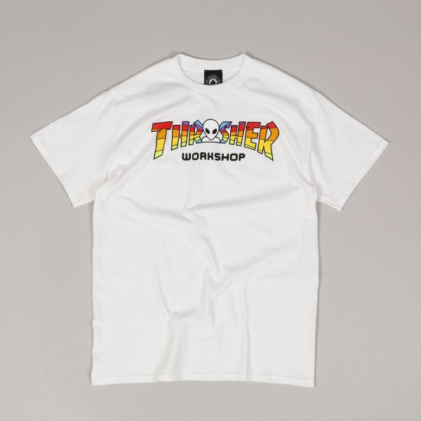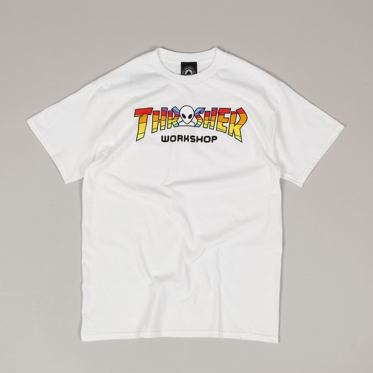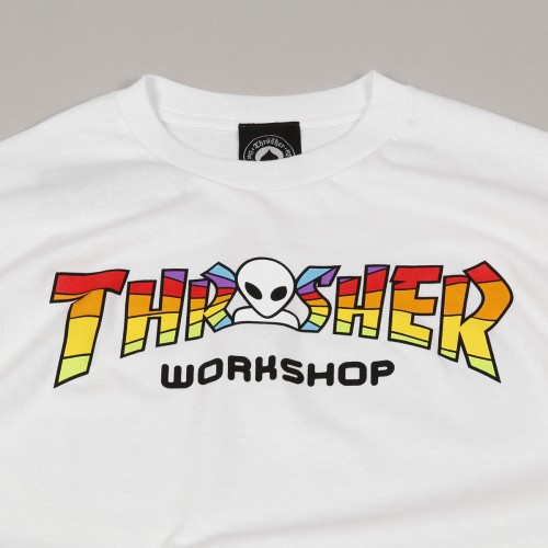 Triko Thrasher Magazine ze speciální kolaborace se značkou Alien Workshop. Model s názvem Spectrum Tee v bílé barvě. Materiál 100% bavlna. Klasický střih REGULAR s krátkými rukávy. Na prsou potisk barevného Skatemag loga Thrasher a nápisu Workshop s mimozemšťanem.