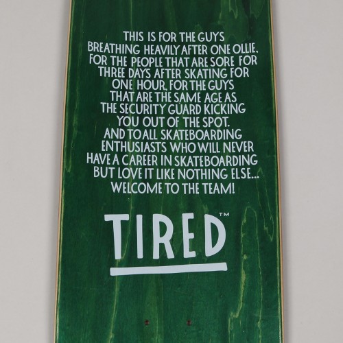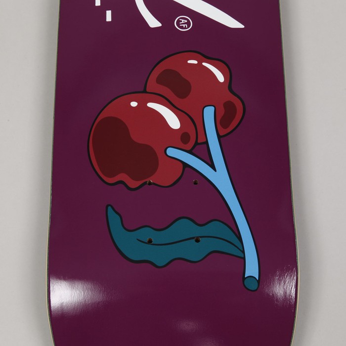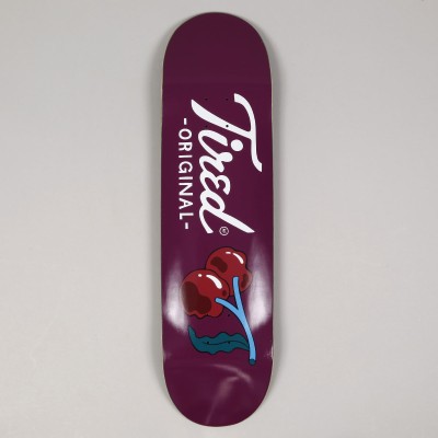 Deska Tired Skateboards, model s názvem Cherise Regular Deck ve velikosti 8.75 palců. Deska má Regular - klasický shape. Grafika pastelového páru třešní s kontrastním nápisem Tired. Tired Skateboards, značka založená známým umělcem Pietem Parrou a jeho kamarádem, skaterem Bradem Stabou. Jejich grafiky se nesou v retro stylu 70. let, pastelových barvách a abstrakci. Ke každé desce grip zdarma. Vrchní barvená strana desky se může lišit oproti fotce.