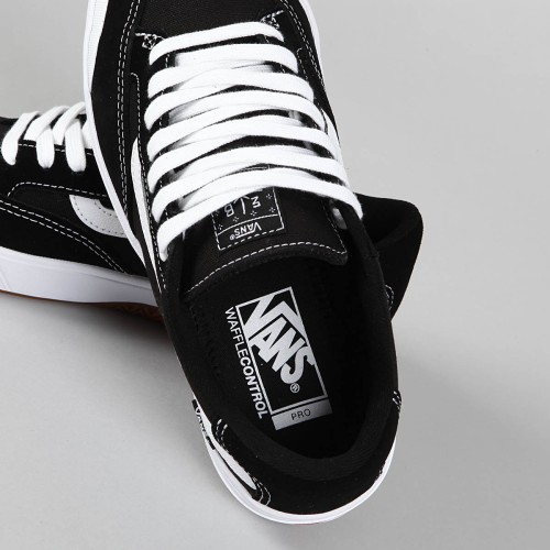 Boty Vans z dílny Pro Skate této kultovní značky. Pro-model Elijaha Berle v klasickém barevném provedení Black White s koženou vlnkou. Svršek je vyroben ze semiše v kombinaci s canvasem a bílým prošíváním. Z boku našitá ikonická vlnka s malou vlaječkou Vans. Horní kovové očko, na jazyku signatura Elijah Berle, polstrovaný, látkový lem patky, velmi pohodlná, anatomicky tvarovaná vnitřní stélka Waffle Control pro tlumení nárazů a zesílenou špičkou. Vulkanická Gum podrážka s vaflovým vzorem a logem Vans na patce. V balení jedny tkaničky navíc.