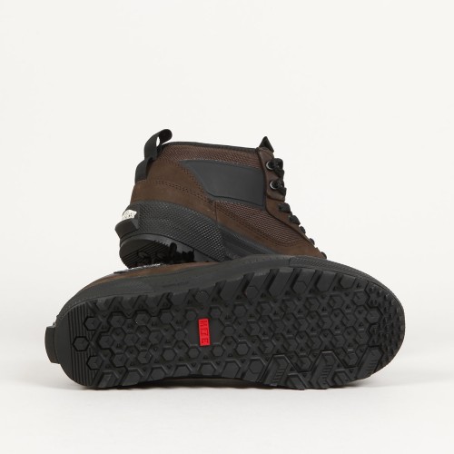 Boty Vans s názvem Half Cab Gore-Tex MTE 3 ve vylepšené zimní úpravě a barevném provedení Brown Black. Promodel bot legendárního Steva Caballera upravený o nejnovější technologie. Svršek vyroben z kombinace kůže, zesíleného canvasu a gumy, který je voděodolný díky nové izolaci Duratherm Gore-Tex. Uvnitř je tkanina z mikrovláken 3M Thinsulate, ta zachycuje a udržuje teplo. Z boku našitý štítek se Stevem Caballerem a názvem boty, kovová očka - dva vrchní D kroužky, polstrovaný lem patky a vyztužená oblast kotníku, elastické klínky na jazyku. Vnitřní vložka UltraCush má dvojitou hustotu EVA a navíc ještě horní vrstvu OrthoLite pro větší pohodlí a snížení hmotnosti. Podrážka MTE 3 s gumovou směsí All-Trac má dynamický dezén, který poskytuje flexibilní přilnavost. Na patce klasická signatura Vans. Na jazyku a patě poutka pro snazší nazouvání.