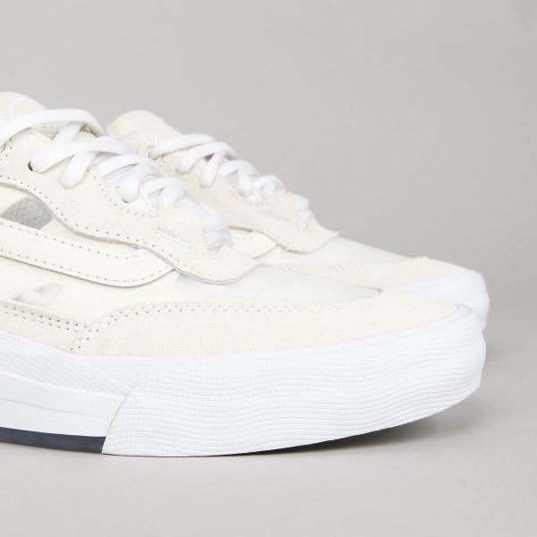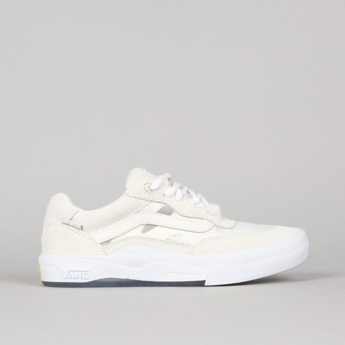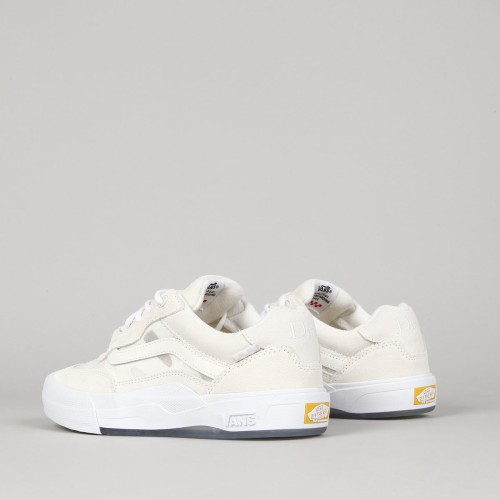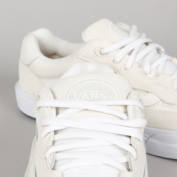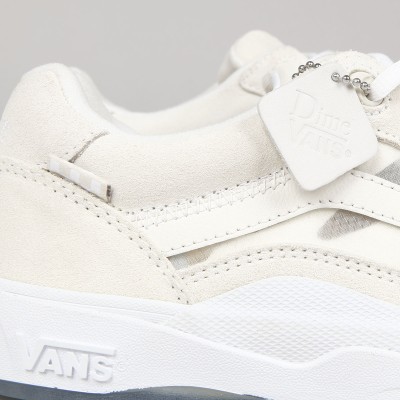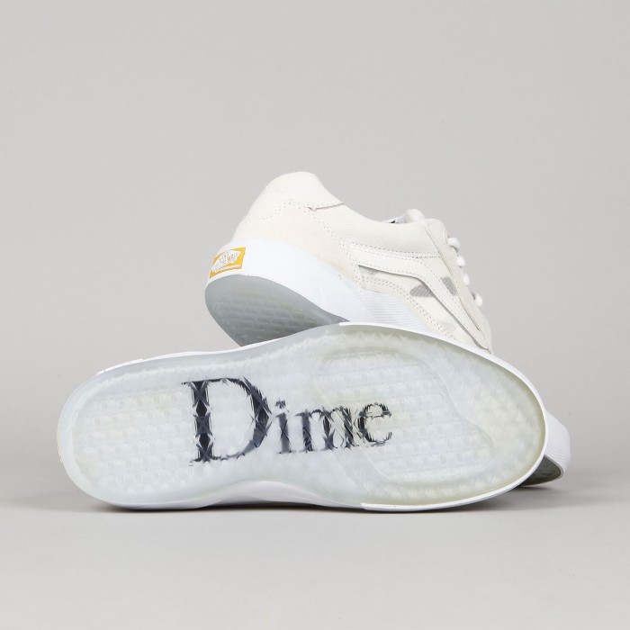 Boty Vans ze speciální kolaborace s kanadskou značkou Dime. Nová silueta s názvem Wayvee v barevném provedení Egret, na které splupracovali také skateři. Svršek je kombinací semiše a průhledného ripstopu pro maximální prodyšnost. Z boku našitá ikonická vlnka s malou vlaječkou Vans, plastové horní očko, na jazyku signatura Vans x Dime, polstrovaný lem patky, velmi pohodlná, anatomicky tvarovaná vnitřní stélka PopCush pro tlumení nárazů a odolná Duracap vrstva se zesílenou špičkou. Vulkanická čirá podrážka s vaflovým vzorem nápisem Dime a logem Vans na patce vybavena technologií Waflecup, která zajišťuje oporu mezipodešve pro lepší cit. Na vnější straně boty 3D nápis Vans a na patě vyšité Dime. Kožená visačka Vans x Dime na řetízku.