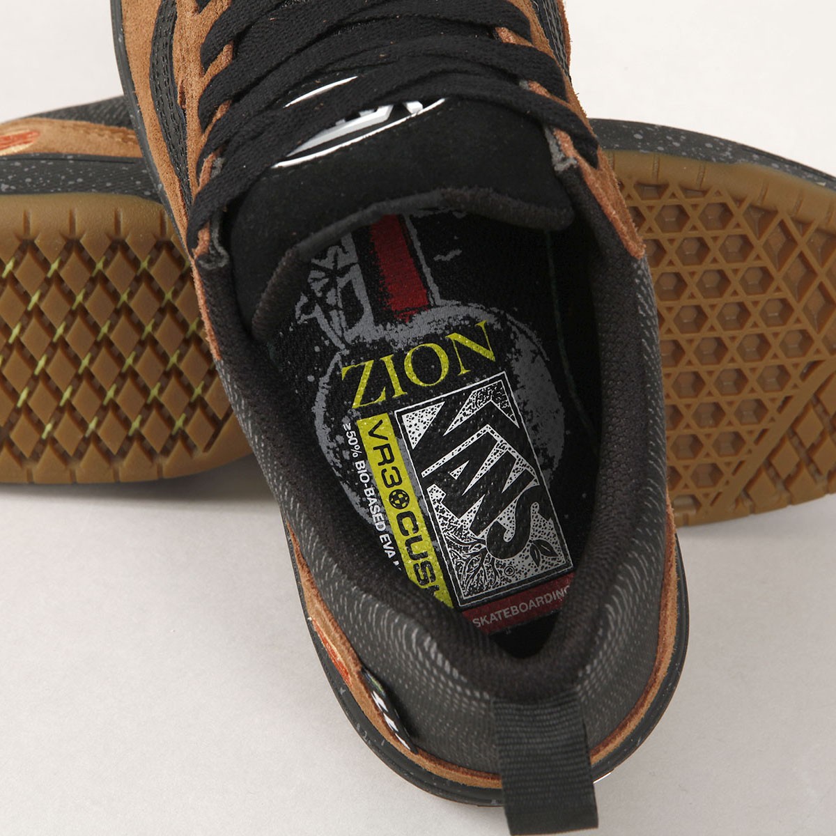 Nová nízká silueta bot Vans s názvem Zahba je sporty inspiriovaná skate bota vyrobená s ohledem na udržitelnost. Na colorwayi se podílel rider Zion Wright. Svršek je z kombinace odolných semišových panelů a lehké síťoviny. Z boku ikonická kožená vlnka s malou šachovnicovou vlaječkou a poutkem na patce. Na špičce zesílená vrstva Duracap pro vyšší odolnost, v oblasti paty je Heel Counter pro větší pohodlí. Podrážka s upraveným vaflovým vzorem kombinuje lepivější technologii SickStick s VR3Cush pěnou s dvojitou hustotou, tím zajišťuje dokonalý grip a zároveň lépe tlumí nárazy. Na patce loga Vans Skateboarding a vyšité římské číslice. Na jazyku oválné retro logo a uvnitř boty stélka s grafikou Ziona.  V balení jedny tkaničky navíc.