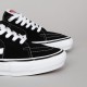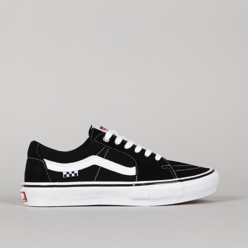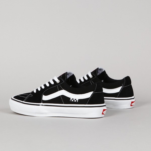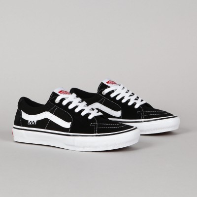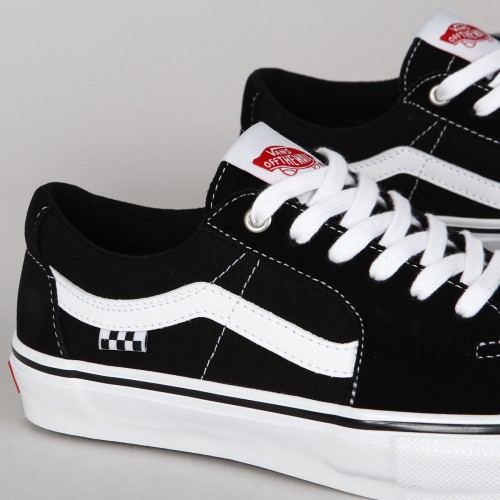 Boty Vans a super předělávka ikonického modelu Sk8-Hi v nízké verzi, tedy boty Sk8-Low, z nové řady Skate Classic, v klasickém a nejoblíbenějším barevném provedení Black/ White. Z boku boty klasická kožená vlnka v kontrastní bílé barvě s našitou šachovnicovou vlaječkou Vans. Svršek v černé barvě je kombinací zesíleného canvasu a semiše. Horní očko kovové, polstrovaný a vyztužený lem patky, velmi pohodlná, anatomicky tvarovaná vnitřní stélka PopCush pro tlumení nárazů a zlepšení odrazu a odolná Duracap vrstva se zesílenou špičkou. Vulkanická podrážka s klasickým vaflovým vzorem a logem Vans Skateboarding na patce. V balení jedny tkaničky navíc.
