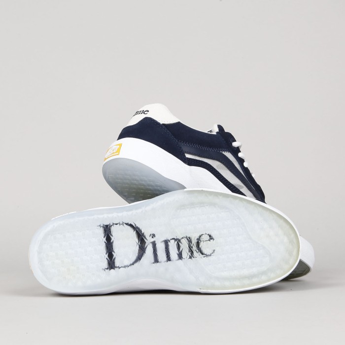 Boty Vans ze speciální kolaborace s kanadskou značkou Dime. Nová silueta s názvem Wayvee v barevném provedení Evening Blue, na které splupracovali také skateři. Svršek je kombinací semiše a průhledného ripstopu pro maximální prodyšnost. Z boku našitá ikonická vlnka s malou vlaječkou Vans, plastové horní očko, na jazyku signatura Vans x Dime, polstrovaný lem patky, velmi pohodlná, anatomicky tvarovaná vnitřní stélka PopCush pro tlumení nárazů a odolná Duracap vrstva se zesílenou špičkou. Vulkanická čirá podrážka s vaflovým vzorem nápisem Dime a logem Vans na patce vybavena technologií Waflecup, která zajišťuje oporu mezipodešve pro lepší cit. Na vnější straně boty 3D nápis Vans a na patě vyšité Dime. Kožená visačka Vans x Dime na řetízku.