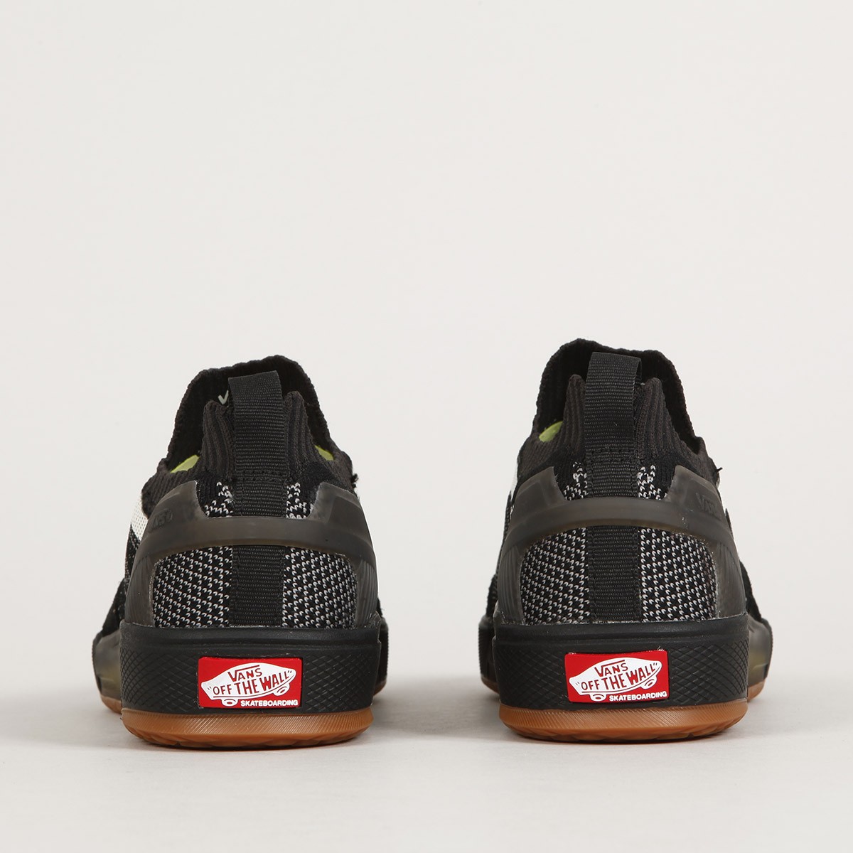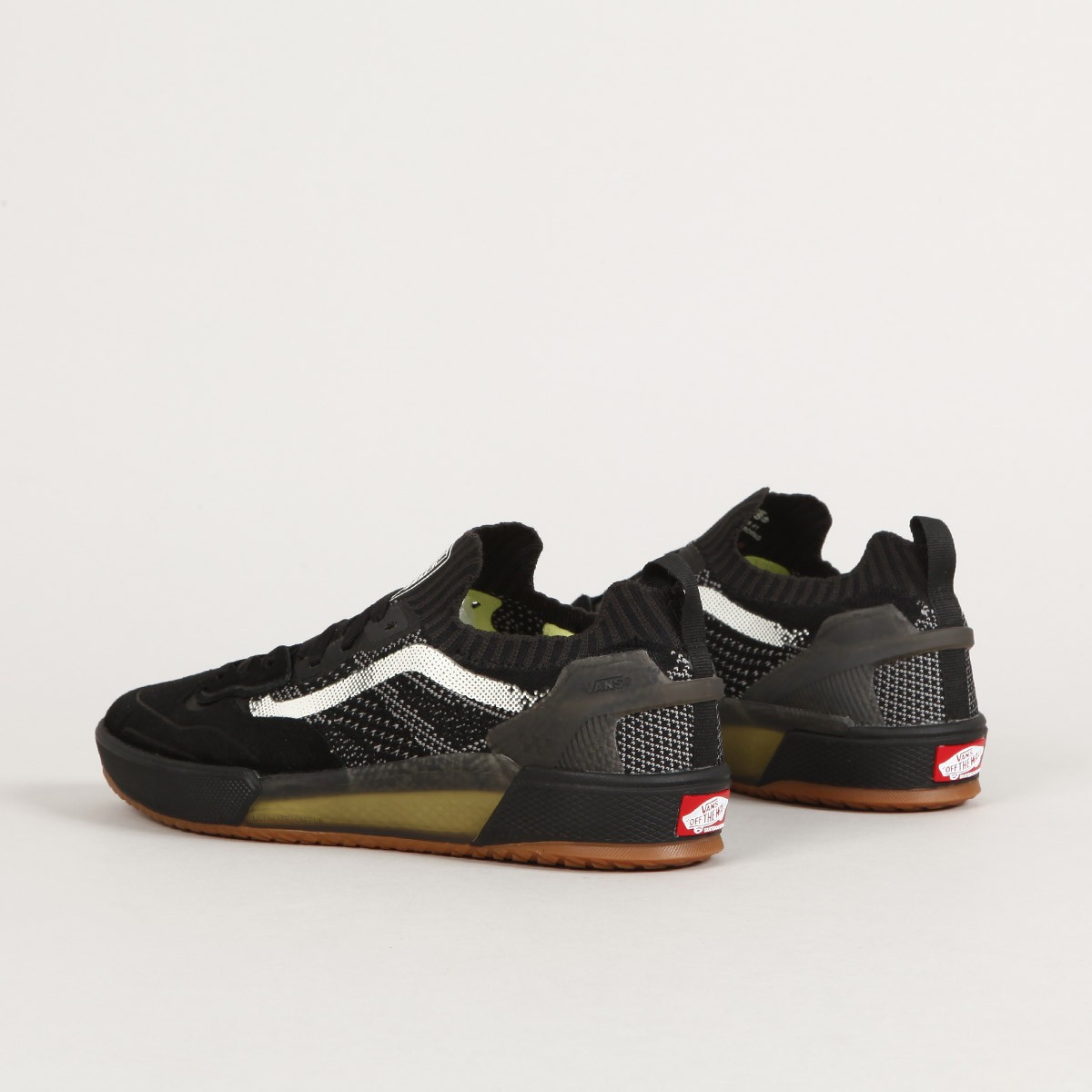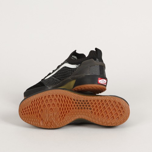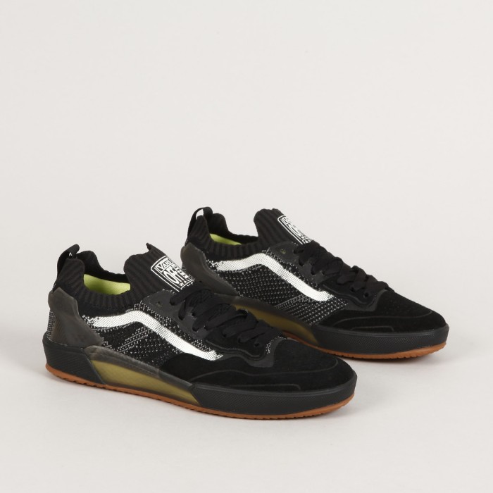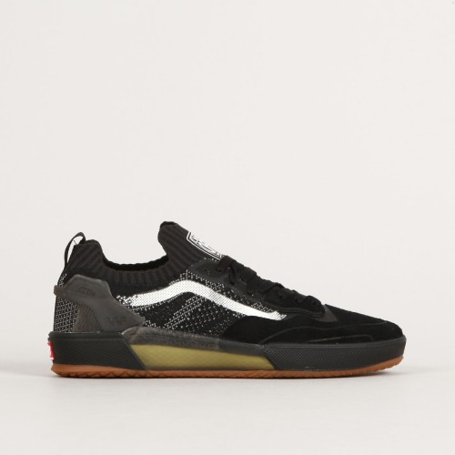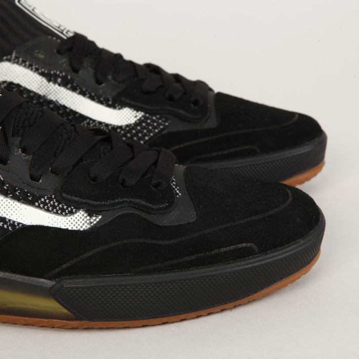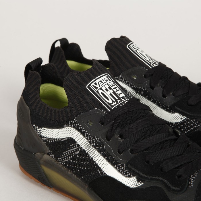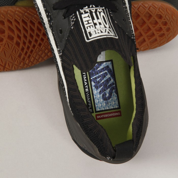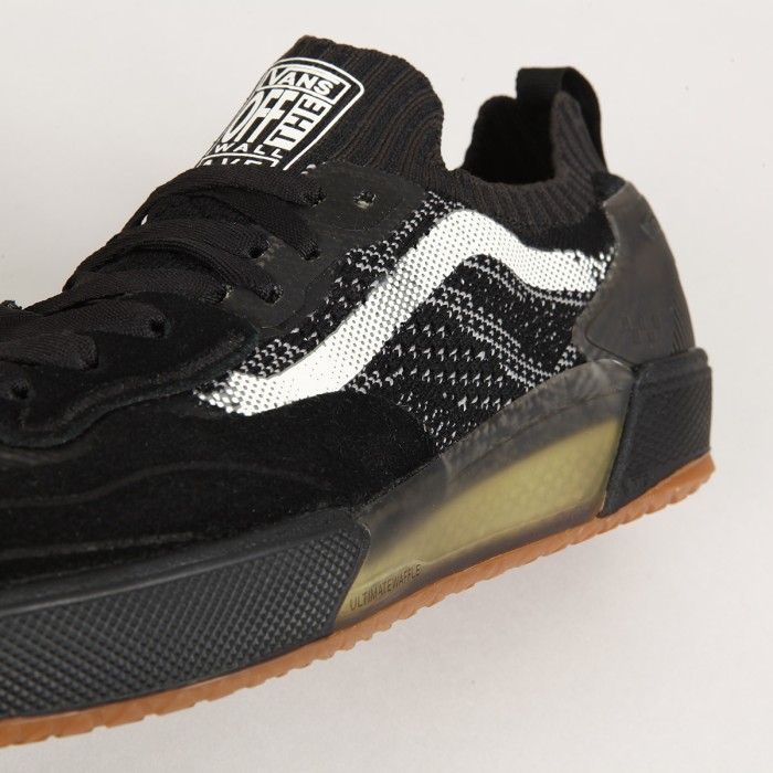 Boty Vans a promodel Anthony Van Engelena - varianta 2.0 Knit. Zbrusu nový model AVE proveden v černé barevné variantě s bílou vlnkou a průhlednou podrážkou. Jednoduchá, lehká a úzká silueta, která perfektně padne na každou nohu. Semišová špička a patka je ve střední části svršku doplněna prodyšnou tkanou částí. Stélka je vylepšená technologií ULTIMATE WAFFLE.