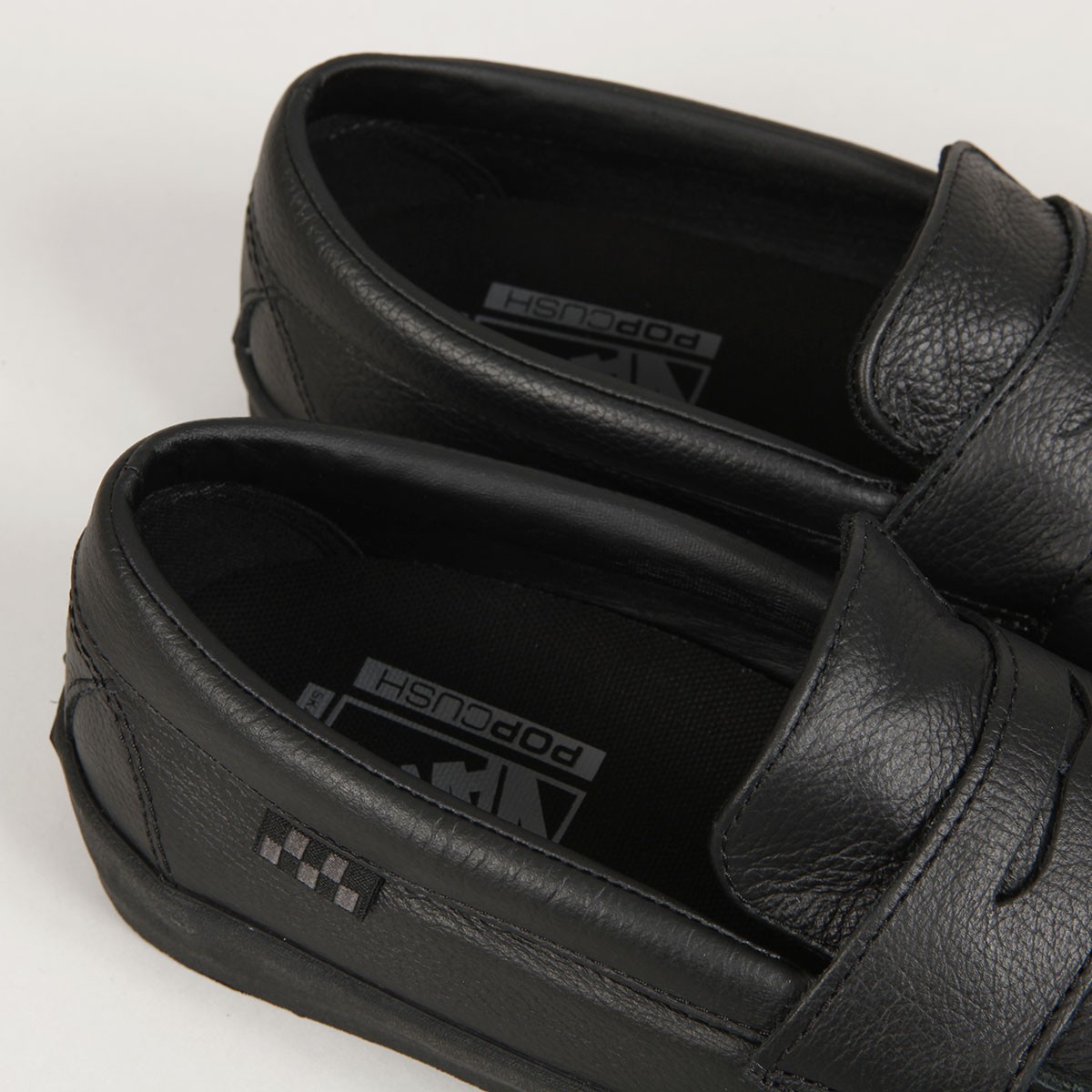 Boty Vans, model Skate Loafer ve vylepšené verzi Skate Classic. Design siluety připomíná mokasíny. Svršek je vyroben z hladké kůže. Vnitřní lemování je z hladké kůže, velmi pohodlná, anatomicky tvarovaná vnitřní stélka PopCush pro tlumení nárazů. Obrácený šev na špičce a stylový pásek přes nárt. Z boku decentní malá vlaječka s logem Vans. Vulkanická podrážka s klasickým vaflovým vzorem a odolnou Duracap vrstvou se zesílenou špičkou. Ikonické logo "off the wall" na patce.