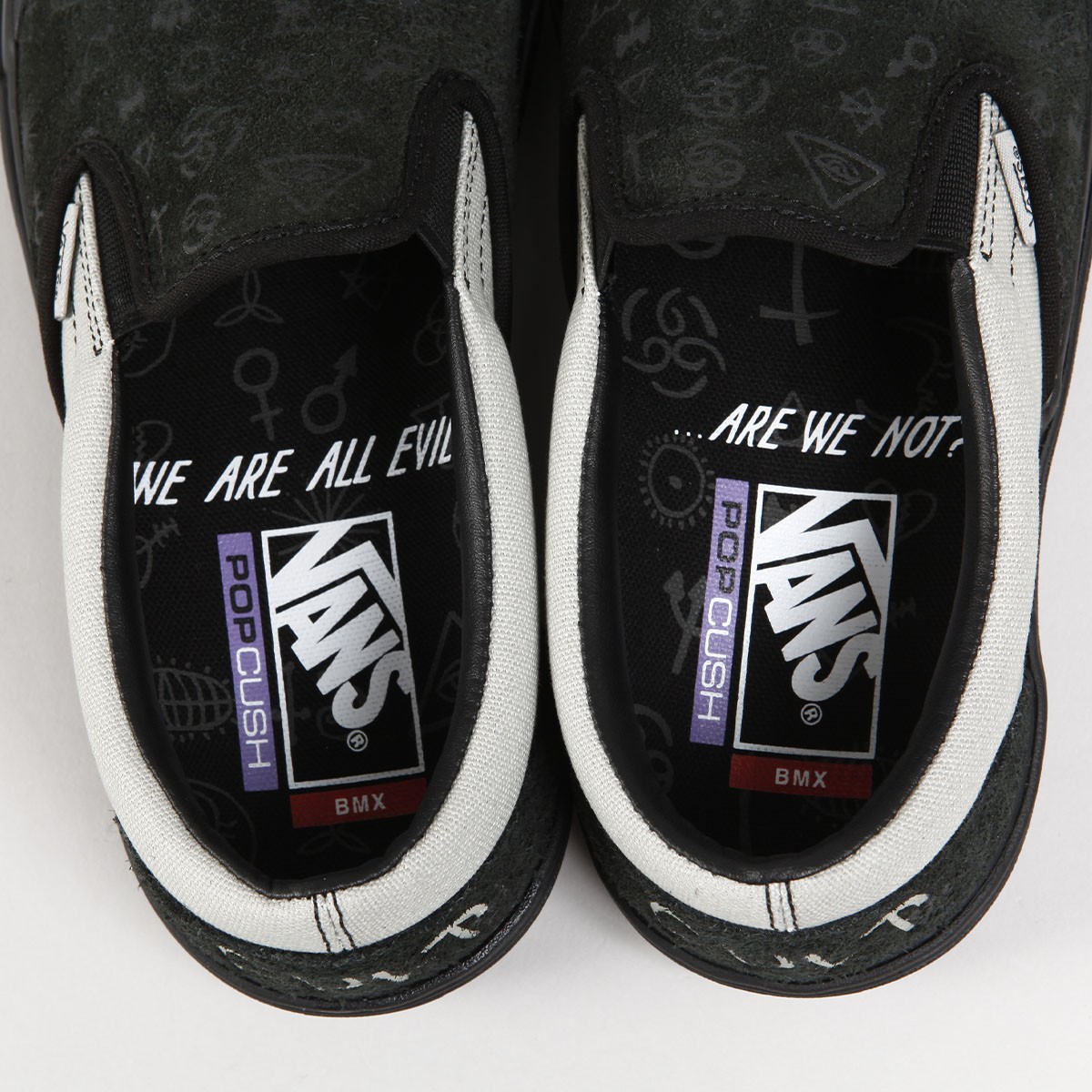 Z boku boty je decentní vlaječka s logem Vans, na svršku vyražené ornamenty a na patce je logo Cult. Na boku podrážek a na vnitřní stélce nápis "We are all evil" "Are we not?".