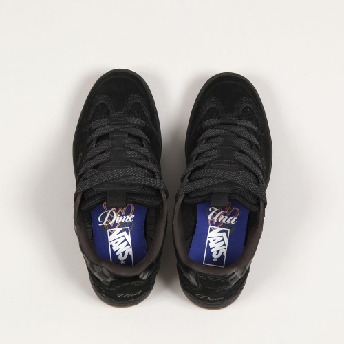 Boty Vans ve speciální kolaboraci s kanadskou značkou Dime. Retro model bot inspirovaný originální siluetou Mixxa z roku 2000. Colorway ve spolupráci se skejťačkou Unou Farrar s klasickým designem, upraveným o nejnovější technologie. Svršek vyroben z kombinace kůže, syntetiky, semiše a prodyšné sítoviny. Na boku vyražená šachovnice s decentní vlaječkou Vans, v oblasti ollie zóny vyšitý čtyřlístek, polstrovaný lem patky a vyztužená oblast kotníku, silnně vystlaný jazyk s poutkem. Retro vzhled podtrhují široké tkaničky. Špička z jednoho panelu s odolnou DURACAP vrstvou a zvýšenou částí T-toe. Podrážka s gumovou směsí SickStick a s vrstvou EVA pěny pro tlumení nárazů a klasickým vaflovým vzorem a logem Vans na chodidlu. Na patě vyšitý nápis Una a Dime. Boty jsou zabalené do černého boxu s čistým designem a ražbou Vans x Dime.