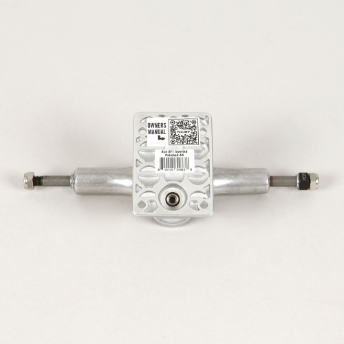 Na pravé straně hangeru vyražená velikost. Na ose je vyrytá doporučená velikost pro výběr ideální šířky k desce. Ke každému trucku je speciální černá matka - závitník, který je univerzální pro každé skate tool. Velikost 44 ideální pro desky 8.25" - 8.5" palce. Na baseplatu natištěné logo ACE.