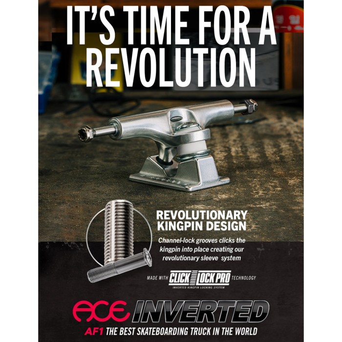 Potrpíš si na perfektně vyladěný skate set-up? Díky truckům ACE AF1 Inverted Hollow to posuneš ještě o level dál. Model Inverted přichází s revoluční novinkou v podobě "click" systému u dotahování kingpinu. Tahle vychytávka ti ulehčí nastavení stejné tuhosti u obou trucků. Tři kliknutí se rovnají jednomu celému otočení kingpinu.
