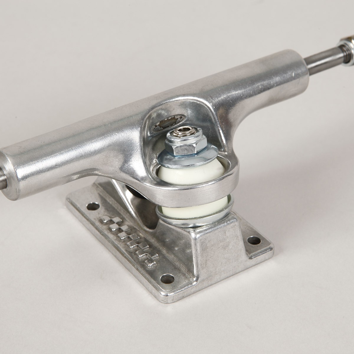 Skateboardové trucky ACE AF1 Low Polished v klasickém stříbrném provedení. Mají kompletně zesílenou konstrukci včetně baseplatu, matičky s patentovanou technologií pro lepší ochranu závitu a dutý kingpin. Na pravé straně hangeru vyražená velikost. Na ose je vyrytá doporučená velikost pro výběr ideální šířky k desce. Ke každému trucku je speciální červená matka - závitník, který je univerzální pro každé skate tool. Velikost 22 ideální pro desky 7.25" - 8.0" palce.