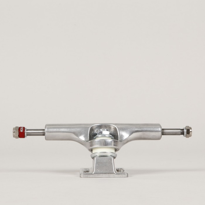 Skateboardové trucky ACE AF1 Low Polished v klasickém stříbrném provedení. Mají kompletně zesílenou konstrukci včetně baseplatu, matičky s patentovanou technologií pro lepší ochranu závitu a dutý kingpin. Na pravé straně hangeru vyražená velikost. Na ose je vyrytá doporučená velikost pro výběr ideální šířky k desce. Ke každému trucku je speciální červená matka - závitník, který je univerzální pro každé skate tool. Velikost 44 ideální pro desky 8.25" - 8.5" palce.