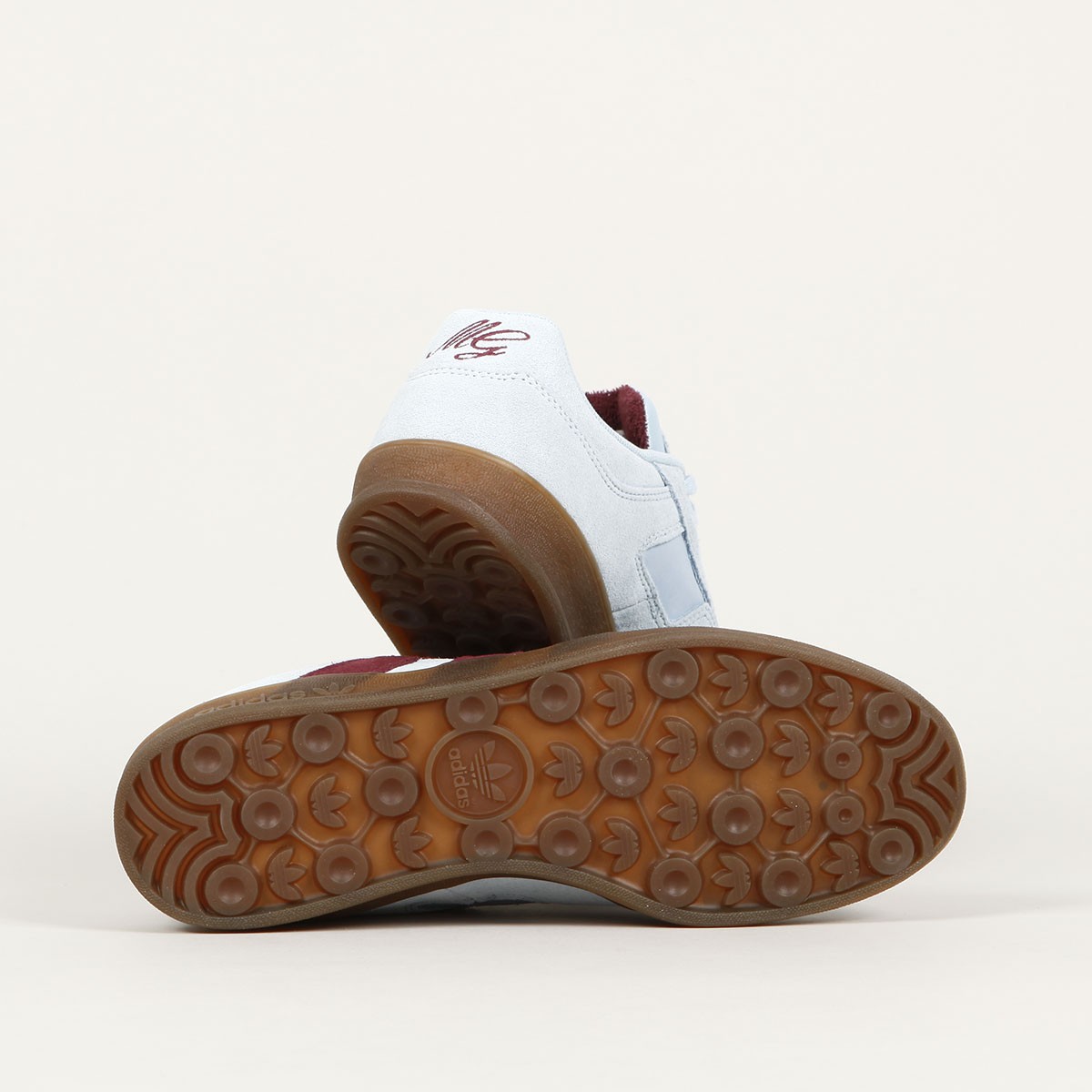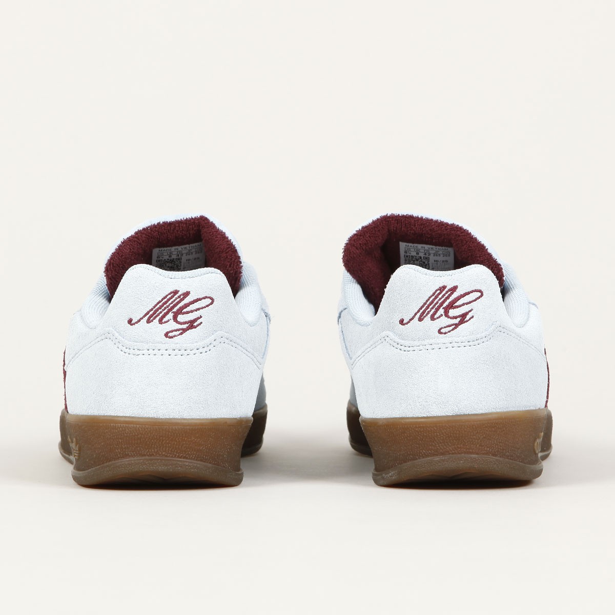 Na jazyku logo adidas v podobě Shmoo ducha. Na patce vyšité iniciály MG - Mark Gonzales. Z vnějšího boku tři pruhy.