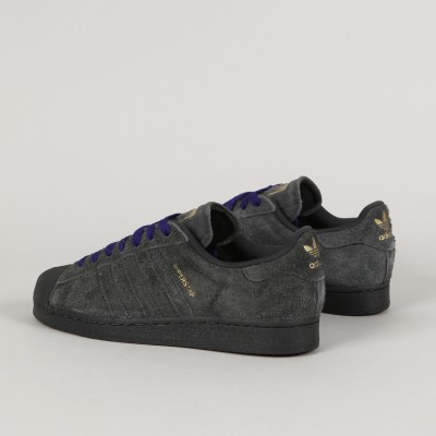 Na bocích mají ikonické pruhy Adidas, na jazyku je kontrastní label s logem a na patě trojlístek. Rovnoběžně s pruhy je zlatý nápis Superstar.