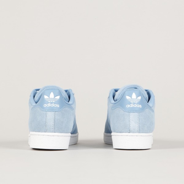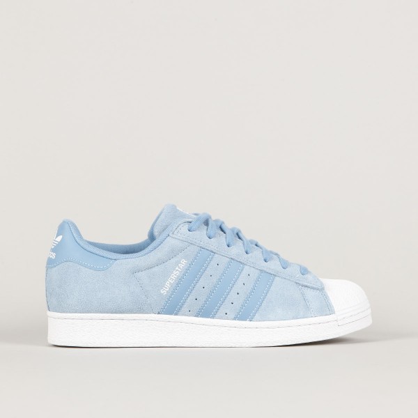 Boty Adidas Skateboarding, model Superstar ADV v barevném provedení Light Blue White. Svršek ze semiše se zesílenou gumovou špičkou "shelltoe" a velmi pohodlnou, speciálně tvarovanou vnitřní vložkou Adiprene. Polstrovaný vnitřní lem patky, na patce kožené logo Adidas a na jazyku logo Adidas Skateboarding. Elastický klínek na jazyku zajišťuje dokonale padnoucí střih, pro lepší kontakt s prknem a jeho ovládání. Z boku tři ikonické pruhy Adidas a nápis Superstar.
