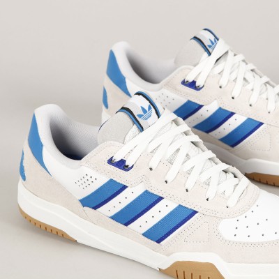 Na bocích mají ikonické pruhy Adidas, na jazyku barevná nášivka s logem a na patě gumový panel s trojlístkem.