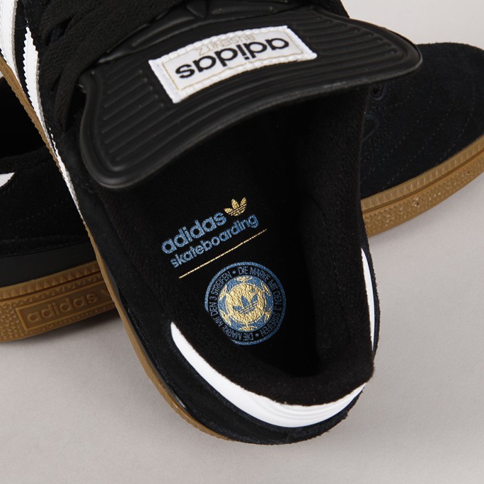 Boty Adidas Skateboarding, model Dennise Busenitze se svrškem z broušené kůže. Speciálně navrženo na skateboarding. Jedna z nejvíce oblíbených bot na skate od adidasu. Cupsole podrážka, zapuštěné přední očka u tkaniček a heel cup na ochranu a stabilizaci paty. Dlouhý jazyk, který je možné odstříhnout. Na jazyku a patce logo adidas skateboarding.