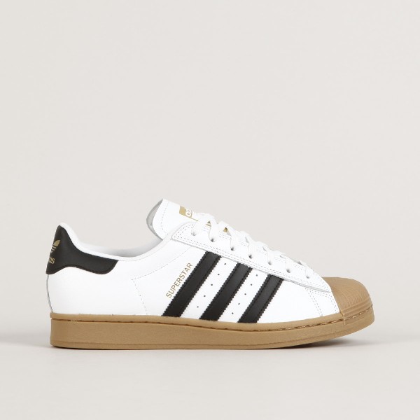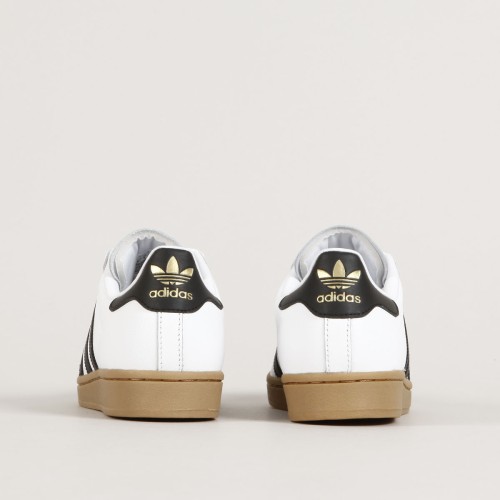 Boty Adidas Skateboarding, model Superstar ADV v barevném provedení White Black Gum. Svršek z hladké kůže se zesílenou gumovou špičkou "shelltoe" a velmi pohodlnou, speciálně tvarovanou vnitřní vložkou Adiprene. Polstrovaný vnitřní lem patky, na patce kožené logo Adidas a na jazyku logo Adidas Skateboarding. Elastický klínek na jazyku zajišťuje dokonale padnoucí střih, pro lepší kontakt s prknem a jeho ovládání. Z boku tři ikonické pruhy Adidas.