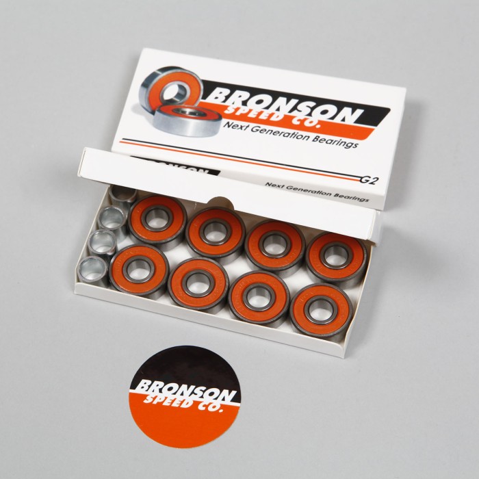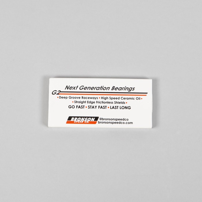 Ložiska od značky Bronson Speed Co., model G2 Next Generation Bearings. Ložiska jsou ošetřeny olejem s nanokeramickými částicemi High Speed Ceramic Oil, mají hlubší drážky a snímatelný gumový kryt pro lepší čistění a menší tření. V balení 8 kusů ložisek.