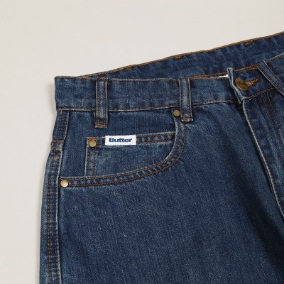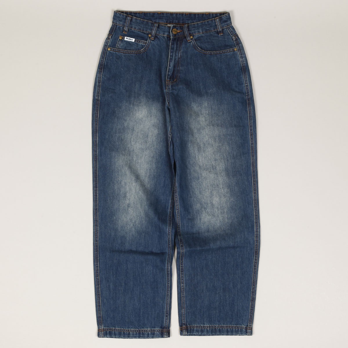 Mají široký Baggy Fit střih s mírným zúžením nohavic. V pravé přední kapse vlaječka Butter a na zadní kapse nášivka Snoopyho bratra Spika, který nosí klobouk a knírek. Na horním lemu obdélníková nášivka s vyraženým labelem.