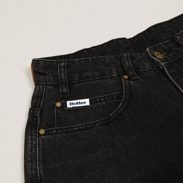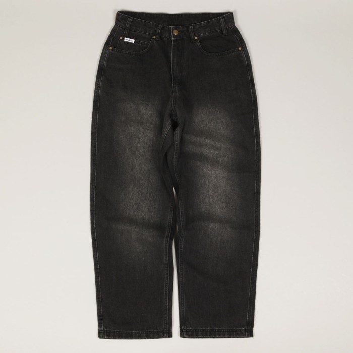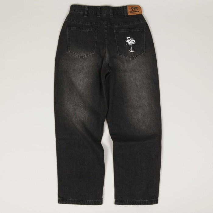 Mají široký Baggy Fit střih s mírným zúžením nohavic. V pravé přední kapse vlaječka Butter a na zadní kapse nášivka Snoopyho bratra Spika, který nosí klobouk a knírek. Na horním lemu obdélníková nášivka s vyraženým labelem.