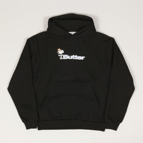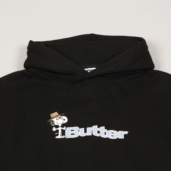 Mikina má na hrudi potisk loga Butter s postavou Snoopyho bratra Spika. Postava Spika nosí klobouk a má knírek.