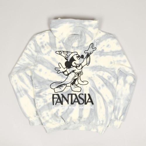 Model s názvem Butter Goods Sight And Sound Pullover Hoodie v batikovaném Tie Dye provedení má na prsou nápis Butter a na zádech velký potisk Mickey Mouse s nápisem Fantasia. Kapuce, velká přední kapsa, elastické rukávy a pas. Materiál 65% bavlna a 35% polyester s vysokou gramáží.