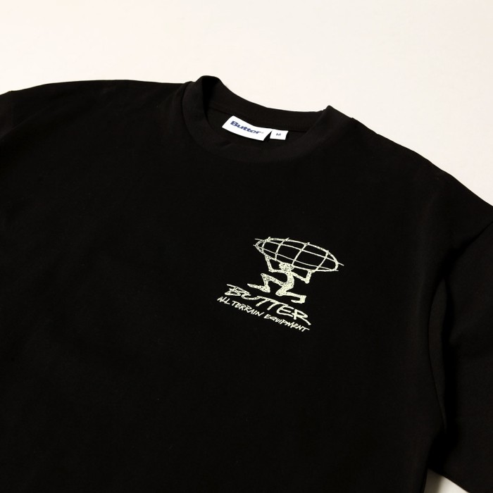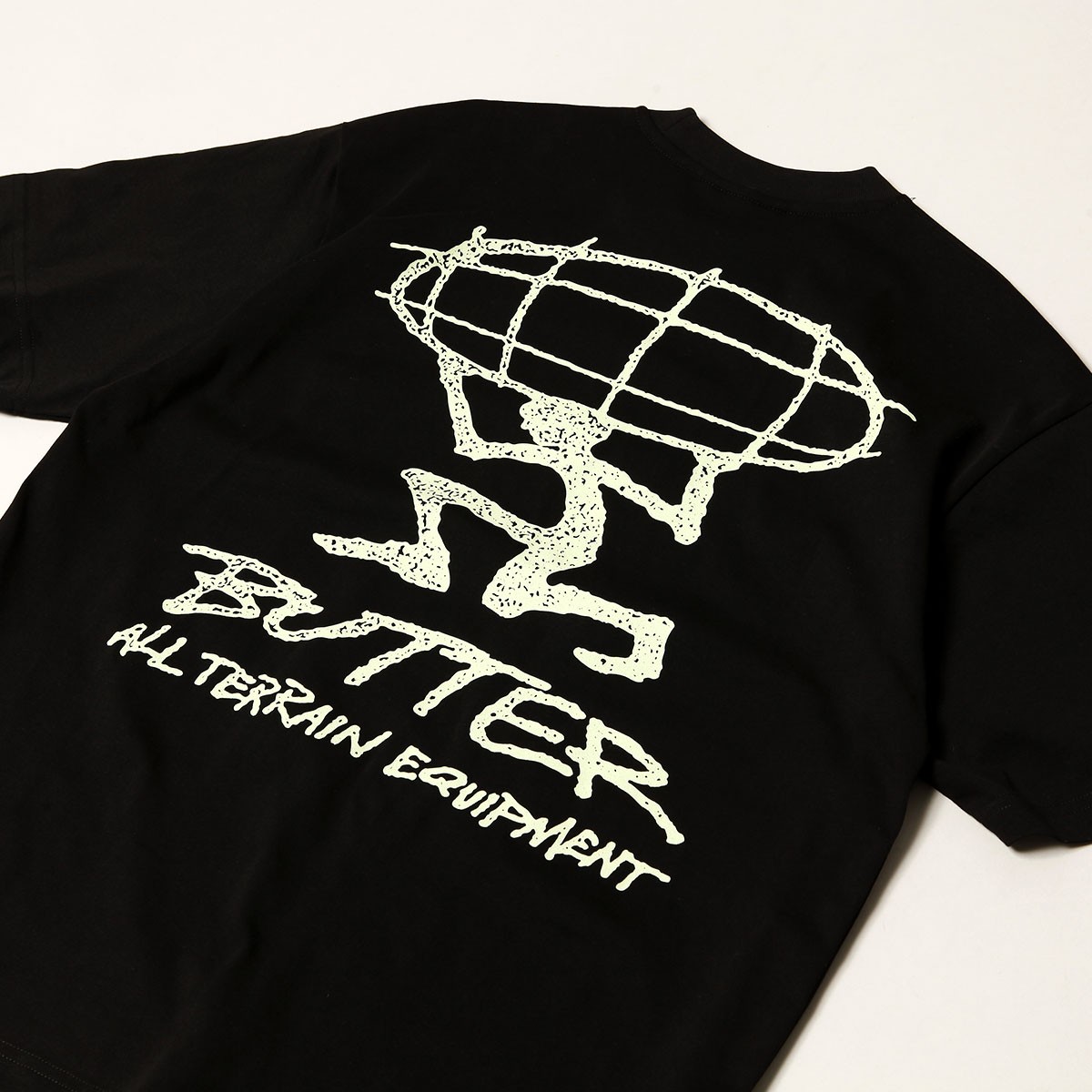 Má malou grafiku na levé straně prsou a na zádech velký potisk loga Butter All Terrain Equipment v kontrastní barvě.