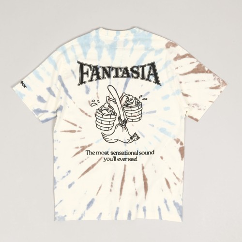 Model trička s názvem Cinema Tee v batikovaném Tie Dye provedení má na prsou potisk Mickey Mouse a na zádech obrázek začarovaného koštětě s velkým nápisem Fantasia. Vyrobeno ze 100% bavlny v gramáži 220g.