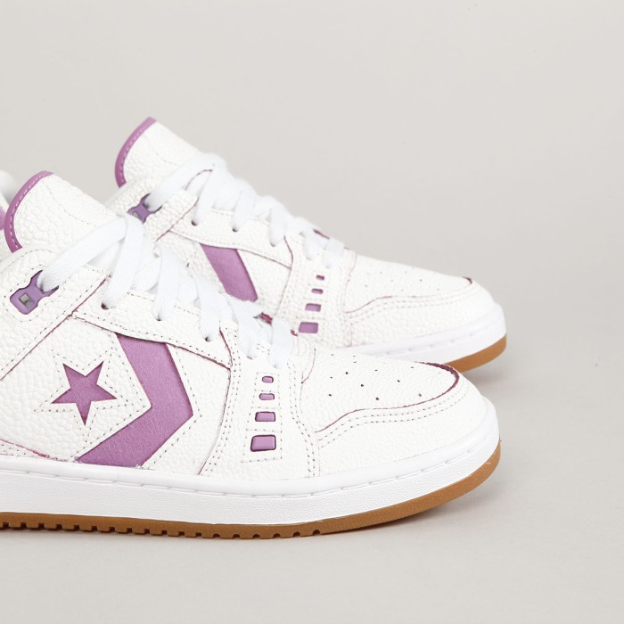 Boty Converse ze skate řady CONS. Spojuje Converse CONS a Nike SB ve speciální spolupráci v rámci LOH v Paříži. Jsou inspirovány duchem a symbolikou orchidejí a chameleonů, stejně jako soupravy Federation Agnostic. Kožený svršek připomíná chameleoní kůži, bílá barva na povrchu při opotřebení a skejtování odhaluje základní růžovou vrstvu. Inovativní promodel AS-1 Pro designován samotnou Alexis Sablone. Kombinují retro styl basketballových bot 80. let s podrážkami z 90. a nejmodernějšími technologiemi. Svršek je vyrobený z kůže s kontrastními semišovými a gumovými detaily, vylepšenou cupsole podrážkou pro lepší pocit na prkně a grip. Uvnitř měkká vložka z CX pěny na tlumení nárazů. Na patě vyražený nápis CONS a malý obrázek chameleona, na jazyku a u kotníku signatura Alexis Sablone a z boku boty logo Star Chevron. Polstrovaný lem kolem kotníku, odolná špička a prošívaná podrážka. Na patce 3D nápis Converse.