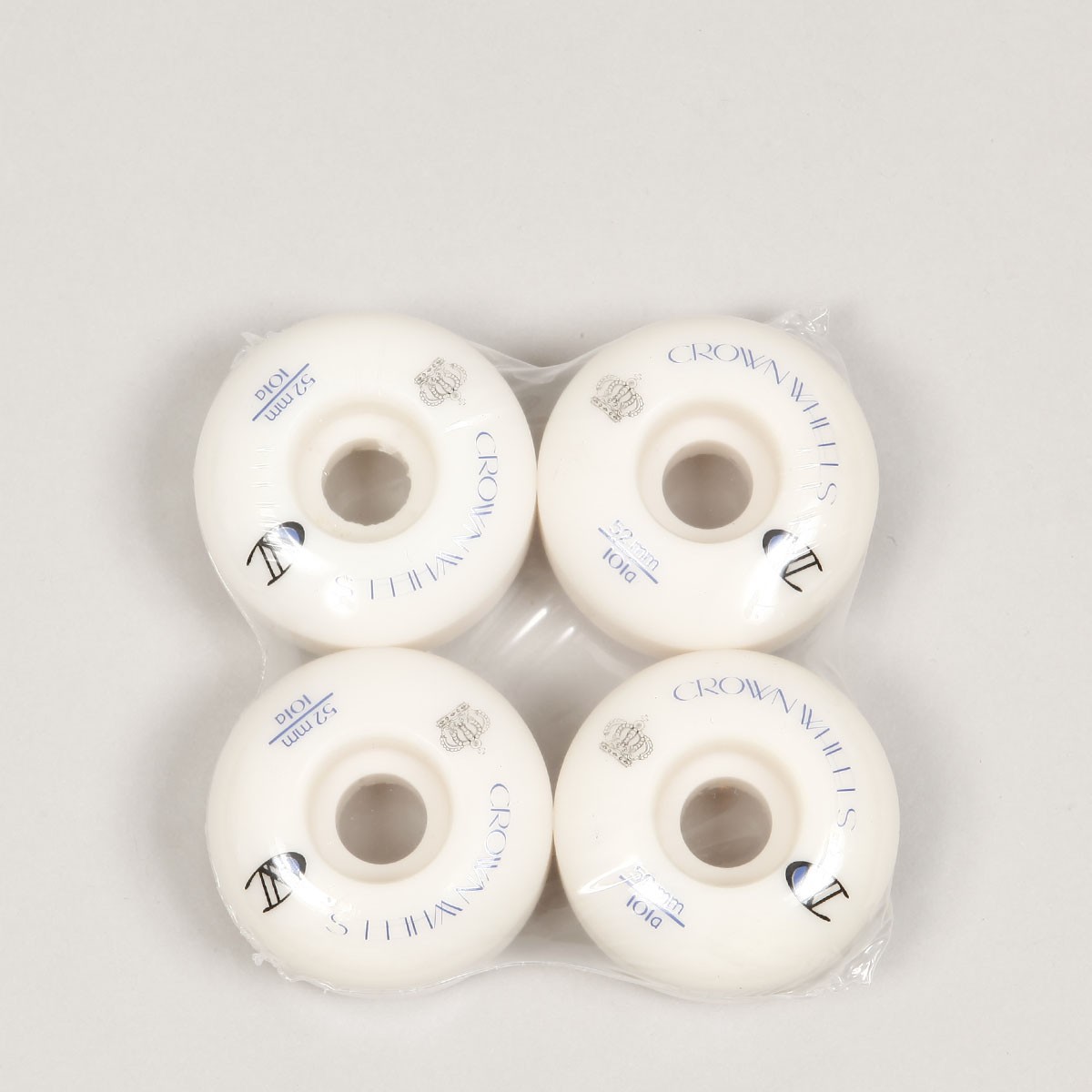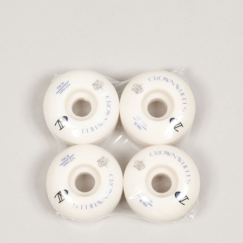 Kolečka z kolekce mladé švédské značky Crown Skateboard Wheels, za kterou jezdí například rider Marek Kocák. Model s názvem Champ v bílé barvě má klasický shape, tvrdost 101a a průměr 52mm. Kontrastní modrá grafika nápisu Crown Wheels s logem značky a korunou.