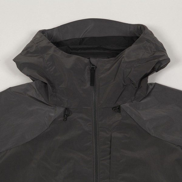 Má vysoký límec s nastavitelnou kapucí, zapínání na YKK zip až ke krku. Na hrudi je skrytá malá náprsní kapsa. Po stranách má dvě kapsy, také se zapínáním na zip. Rukávy si můžeš upravit pomocí suchého zipu. Pas je stahovatelný na gumičku s jezdci.