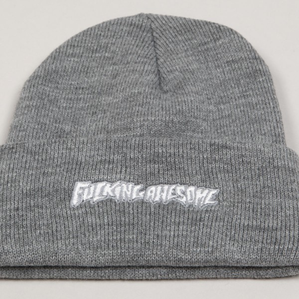 Kulich Fucking Awesome s názvem Little Stamp Embroidered Beanie v žíhané šedé barvě. Přehnutý lem s vyšitým kontrastním nápisem Fucking Awesome. Vyrobeno ze 100% akrylu.