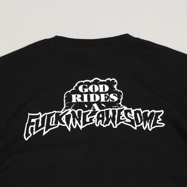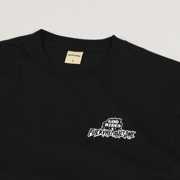 Triko Fucking Awesome z nové kolekce, za kterou stojí skejtři Jason Dill a Anthony Van Engelen. Model God Rides FA Tee má na prsou malý a na zádech velký potisk s nápisem God Rides A Fucking Awesome. Materiál 100% bavlna.