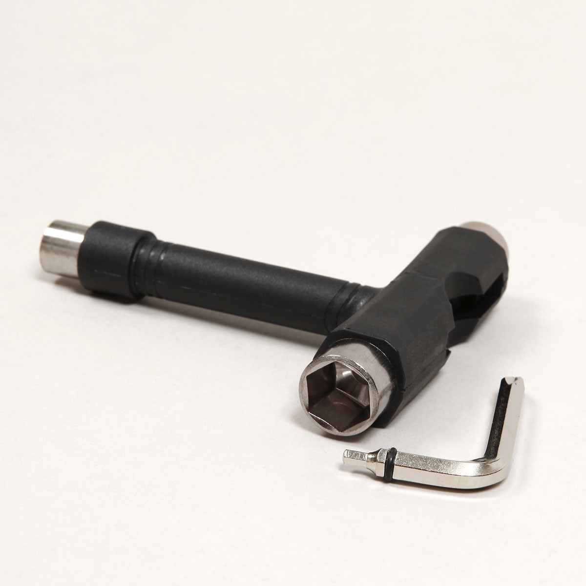 Nářadí na skate značky G-Tool s názvem Skate T-Tool v černé barvě. Plastové provedení, obsahuje imbus a křížový šroubovák, 10, 13, a 14 milimetrové klíče na utakování matiček.