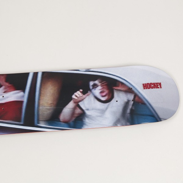 Skateboardová deska od značky Jason Dilla a AVEho - Hockey Skateboards. Promodel ridera Bena Kadow s názvem Car Kid Deck, celoplošná grafika kluka koukajícího z okénka v autě s nápisem Hockey. Velikost 8.25 palců, délka 32.24 palců a wheel base 14.75 palců. Vrchní barvená strana desky se může lišit oproti fotce. Ke každé desce grip zdarma.