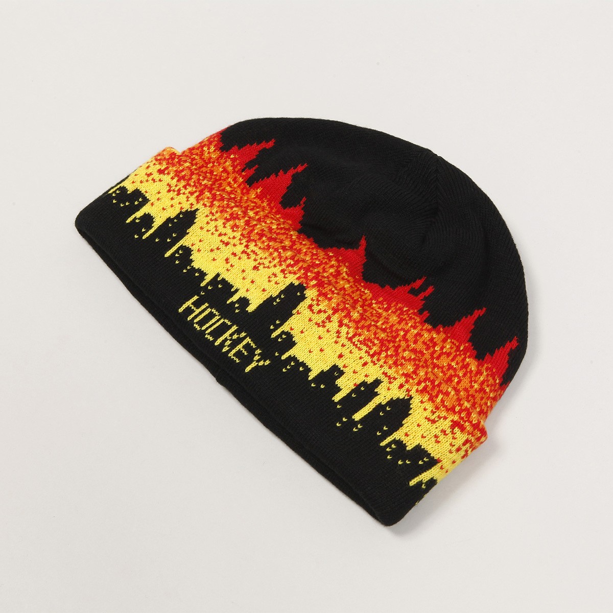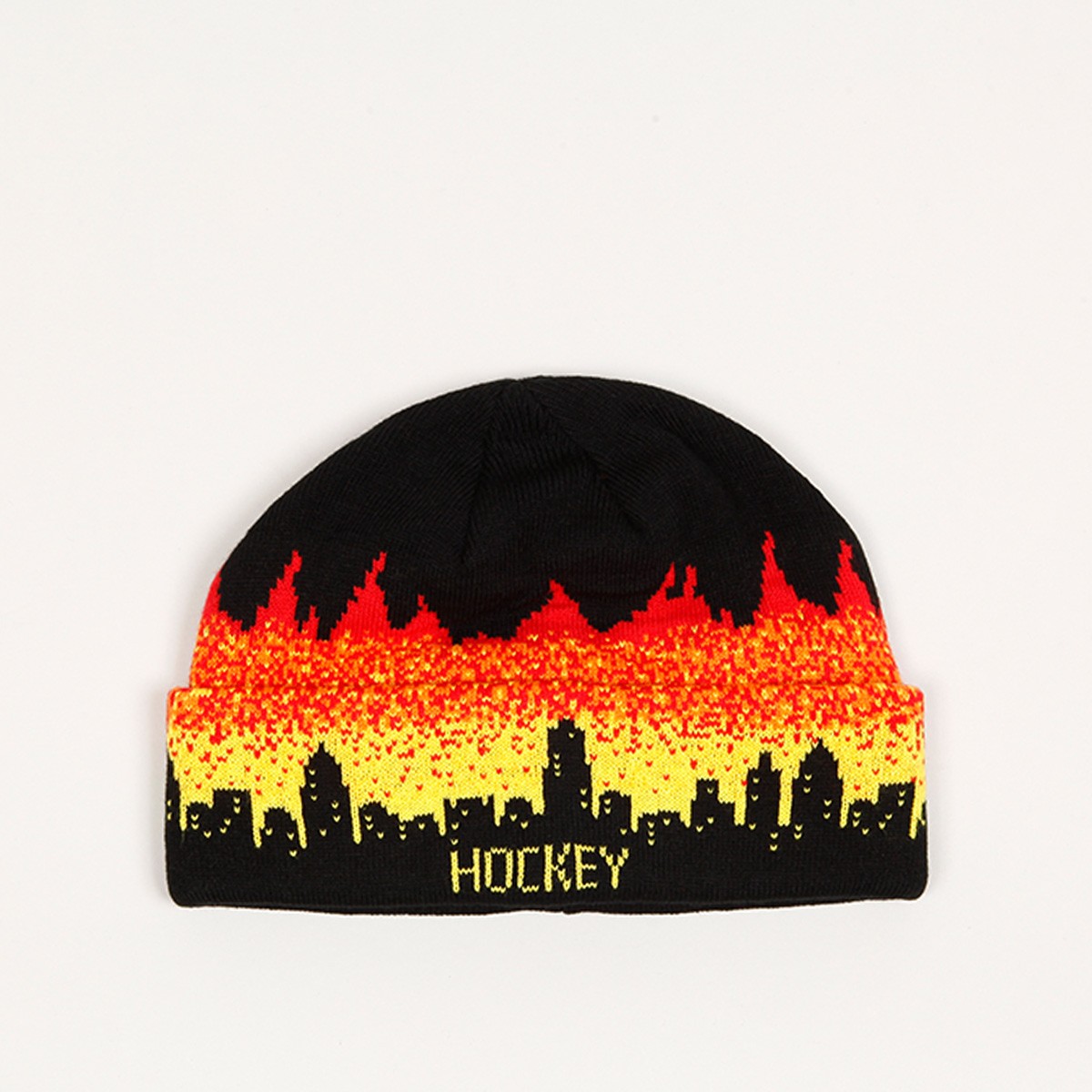 Kulich Lights Out Beanie Black od značky Hockey Skateboards, za kterou stojí legendy skateboardingu Jason Dill a Anthony van Engelen. Po obvodu čepice pletený motiv hořícího města s nápisem Hockey. Střih větší velikosti s přehnutým lemem. Vyrobeno ze 100% akrylu.