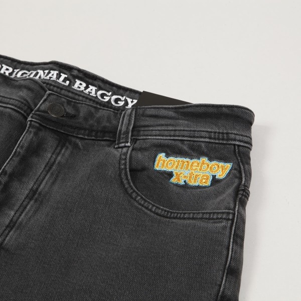 Homeboy X-Tra Baggy Shorts in washed grey. Inspired by the classic vintage look of 90s shorts. Wide baggy cut. Contrasting Homeboy X-Tra embroidered lettering on the left front pocket. X-stitching and a rainbow flag on the back pocket. Homeboy label on the upper hem. Button fastening. Made of 99% cotton and 1% elastane.