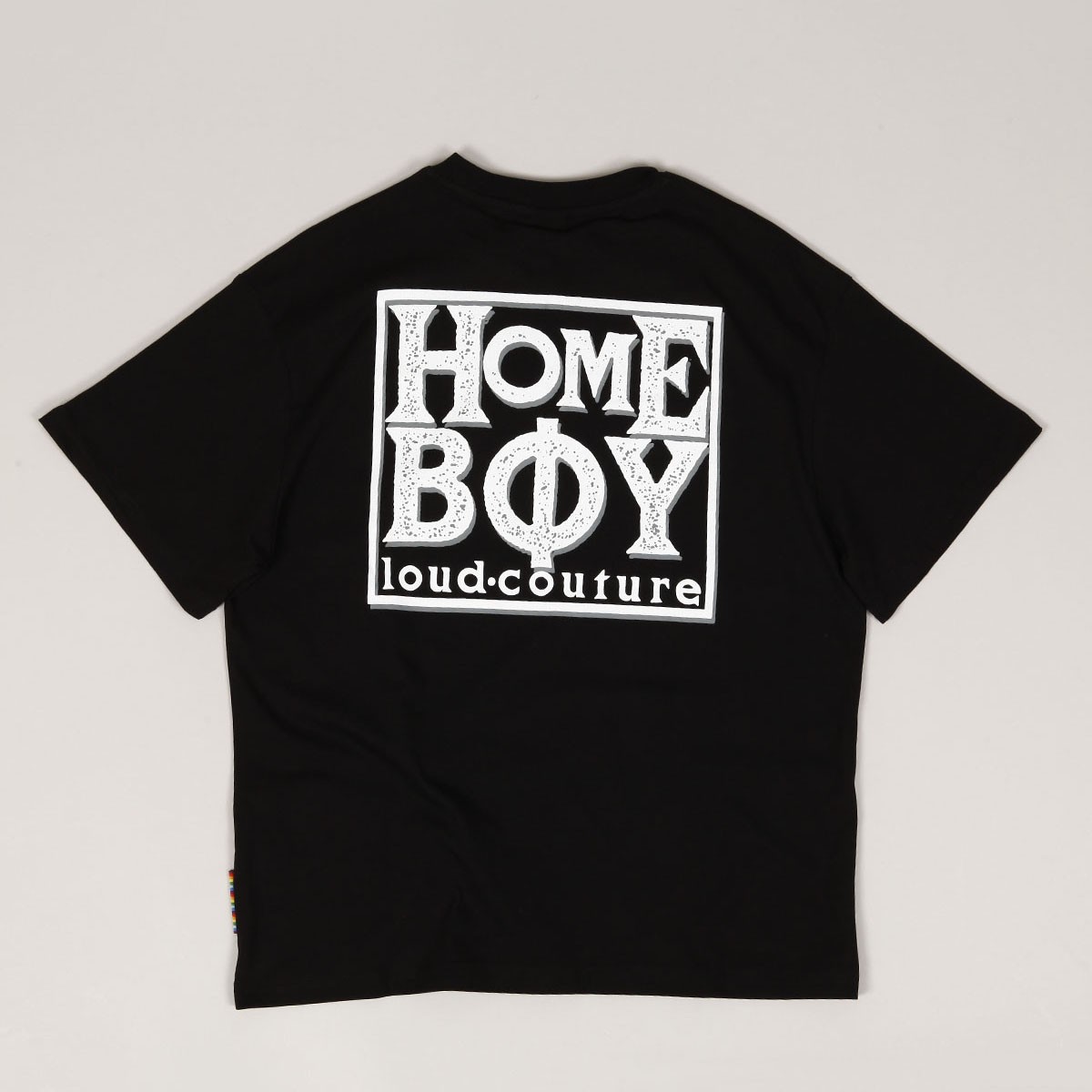 Triko Homeboy s názvem Old School Tee v černé barvě. Na prsou malé a na zádech velké logo Homeboy v kontrastním provedení. Motiv původního loga značky z roku 1988. Na levém boku decentní duhová vlaječka. Triko má mírný oversize střih. Vyrobeno ze 100% bavlny.