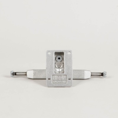 Skateboardové trucky Lurpiv Hollow v klasickém stříbrném provedení. Mají originální hranatější design, hanger a baseplate z zepelně zpracované hliníkové slitiny AA357 a T6, odlehčený - dutý kingpin z oceli SCM435 a osy z oceli SCM440. Osazené bushingy mají tvrdost 92A. Na pravé straně hangeru vyražená velikost. Velikost 140, 145 a 150 milimetrů.