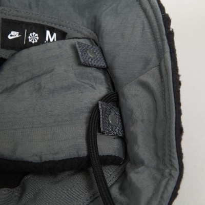 Klobouček Nike SB s názvem Apex Ear Flaps Bucket Hat v barvě Black Iron Grey. Je vyroben z příjemného měkkého flísu, má odnímatelné klapky na uši, stahovací šňůrku a střední hloubku. Klapky jsou na patentky, které přicvakneš dovnitř klobouku. Když je zrovna nepoužíváš, schováš je do skryté kapsičky na temeni. Silný flísový materiál je lehký, ale zároveň mimořádně hřejivý. Na čele je vyšitý swoosh Nike.