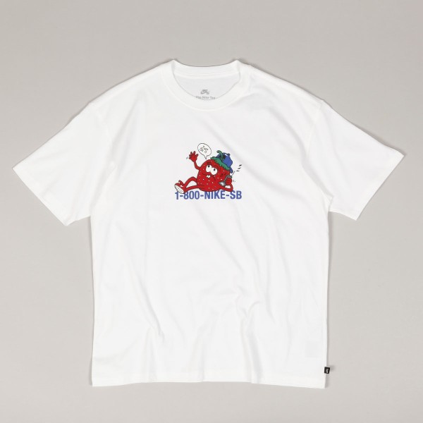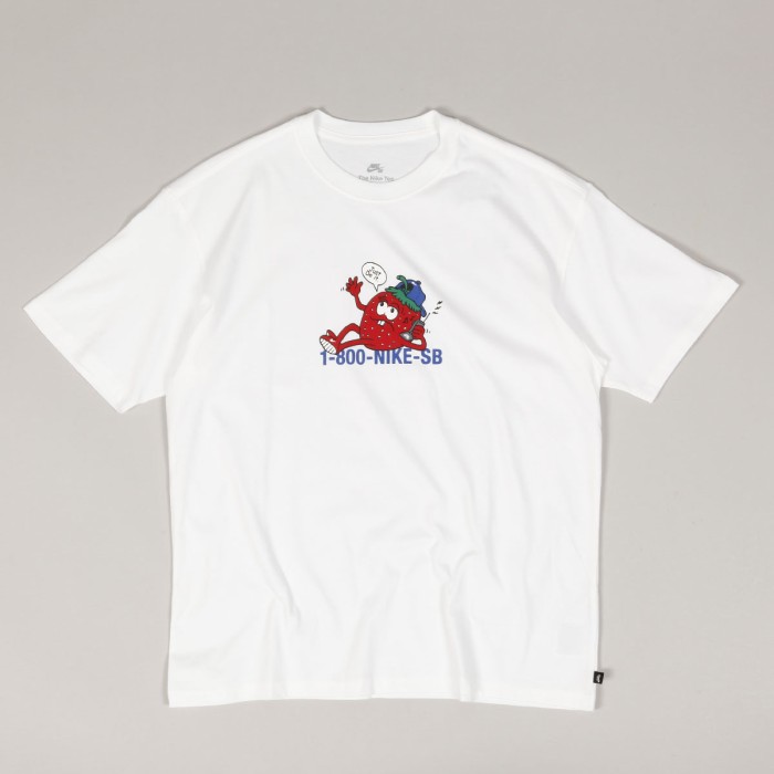 Triko Nike SB, model s názvem Flip Phone Tee v bílé barvě. Je navrženo pro skateboarding, ale vhodné i na běžné nošení. Na prsou grafika telefonující jahody s číslem a nápisem Nike SB. Na levém boku decentní vlaječka značky. Vyrobeno ze středně silné bavlny, která je zárověň měkká a lehce strukturovaná. Triko má volný střih LOOSE FIT ( tedy je volnější a větší, než standartní velikosti.. doporučujeme posunout o jednu velikost dolu, pokud plánuješ triko nosit, více na tělo na bežné nošení.)