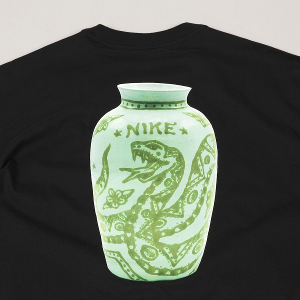 Triko Nike SB s názvem Vase Tee je navrženo pro skateboarding, ale vhodné i na běžné nošení. Na levé straně prsou má vyšité kontrastní logo Nike SB a na zádech je velká grafika porcelelánové vázy. Levý bok trika zdobí decentní vlaječka značky.
