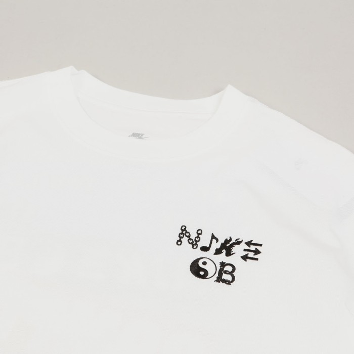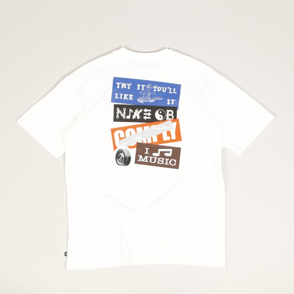 Triko Nike SB s názvem Stickers Tee je navrženo pro skateboarding, ale vhodné i na běžné nošení. Na levé straně prsou vyšitý malý nápis Nike SB a na zádech velký potisk se samolepekami. Levý bok trika zdobí decentní vlaječka značky.