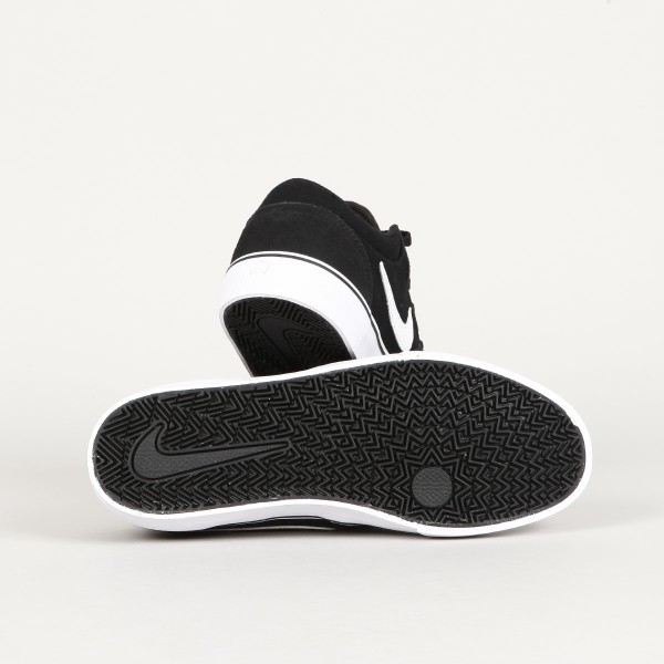 Skateboardové boty Nike SB s názvem Chron 2 v barvě Black White. Svršek je vyroben z kombinace semiše a zesíleného canvasu. Tenký a prodyšný jazyk zajišťuje dostatečné proudění vzduchu. Pěna Solarsoft s dvojí hustotou pro tlumení dopadů a podrážka se hvězdičkovým vzorem poskytují vynikající přilnavost a kontakt s prknem. Horní očka jsou kovová. Na boku našitý swoosh a na jazyku logo Nike SB.