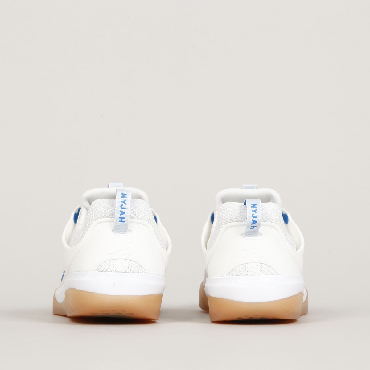 Boty Nike Skateboarding, třetí promodel ridera Nyjaha Hustona kombinující novou technologii Nike Flypate a klasickou Air Zoom. Inspirováno modelem Nike Air Presto. Nyjah Free 3 jsou pohodlné boty v nízké verzi s vulc podrážkou a měkkou střední částí s polštářkem Air Zoom pod patou na tlumení nárazů. Gumový svršek s perforací na špičce a nártu pro lepší prodyšnost. Na jazyku poutko NYJAH a na patce vyražené logo Nike SB. Na vnější a vnitřní straně natištěná decentní fajfka. Barevná kombinace Summit White/ Photo Blue - Summit White.